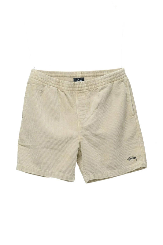 The Stussy 'Wide Wale Cord Beachshort Khaki' are a men's elasticated waist short with internal draw cord. Featuring front in-seam pockets, back pockets, woven label on left leg & embroidered logo at back. Here we have them paired with the 'Big Stock Short Sleeve Tee White', the 'Club C Revenge Shoe White Boulder Beige', the 'Stock Low Pro Cap Black' and the 'Icon Wallet Black'.