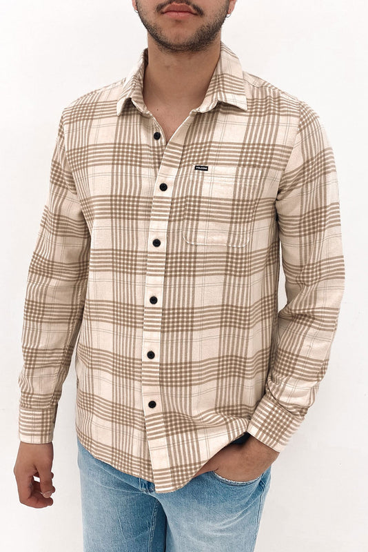 You want clean, you want classic, you want solid? The 'Caden Plaid Long Sleeve Dirty White' is the only way to go. Pair it with the 'A Cropped Straight Jean Hoops', the 'Chuck Taylor All Star High Top Black', and the 'Flip Wallet Black'. This outfit is perfect for the cooler days!