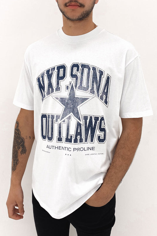 Outlaws Box Fit Scoop Tee White