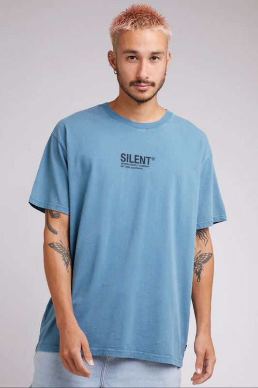 The 'Icon Tee Ocean Blue' by Silent Theory is a must-have simple graphic tee for your wardrobe. Here we have it paired with some black denim shorts, the 'Continental 80 Shoe Cloud White Scarlet Collegiate Navy', the 'Las Vegas Raiders Casual Classic Cloth Strap Stone OTC', and the 'Meridien // Matte Black w/ Lumalens Smoke'.