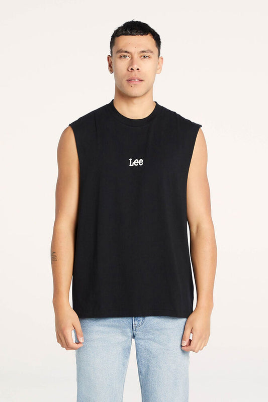 Lee's 'Altos Muscle Black' is a relaxed fit with cut raw armholes, featuring their iconic logo. Pair it back with the 'L-Three Short Lit Blue', the 'Superstar Shoe Cloud White Core Black', the 'Small Twitch Logo Cap Beige' and the 'Bandwagon // Matte Tort Polarized' sunglasses for the ultimate weekend look.