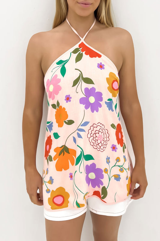 Look 3 - The 'Iris Top Amsterdam', styled with the 'Gabe Denim Short White', and the 'Zinnia Sandal Bone'.