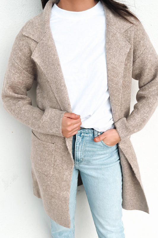 Finish your look with an extra layer of comfort with the 'Aspen Coatigan Brown'. This comfy coatigan features an open front, long sleeves, and a ribbed finish. It's perfect for those throw-on-and-go days and will keep you warm on those days out. Pair it with a basic white tee like the 'Oversized Tee White', some black jeans like the 'A 94 High Straight Jean Chelsea Organic', the 'Jaida Boot Black', and the 'Aztec Coin Necklace Gold' for the perfect look!