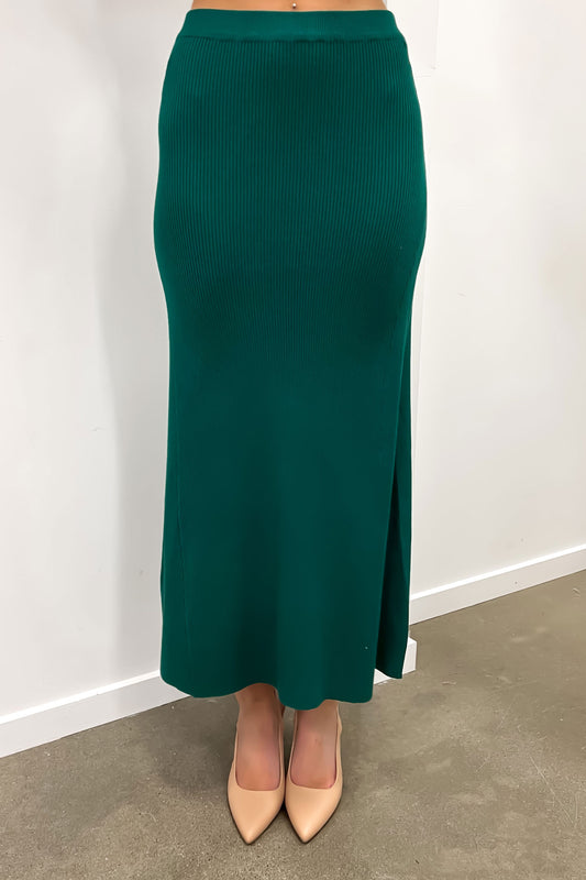 Look 5 - The Karina Knit Top Emerald and the Karina Knit Skirt Emerald with the Spencer Slingback Pumps Nude Smooth.