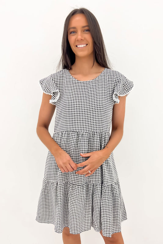 Elevate your style with the 'Bennie Mini Dress Black Gingham'. Timeless and versatile, it boasts a flattering silhouette and classic pattern for a chic, sophisticated look! Pair it back with the '2790 Platform White', the 'She Burns Bag Black Croc Emboss', the 'Elena Hoops Gold', and the 'Gala Charm Necklace Gold'.