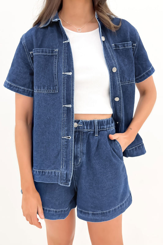 Nothing beats a matching set! Perfect to pair together or separately. Here we have styled the Serina Denim Shirt and the Serina Denim Short back with the Chuck Taylor All Star Canvas Lift High Top White for a more relaxed look. To finish the look off we have the Plunder With Webbed Strap Chalk and the Unfaithful // Cookie Tort by Le Specs.