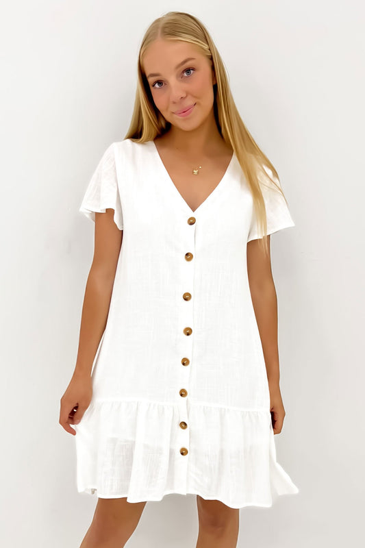 The Kayla Mini Dress is our pick from this week's New Arrivals. We love this styled back with Tan Sandals, a straw bag and dainty gold jewellery for a super cute everyday look.