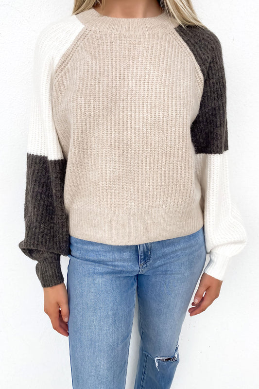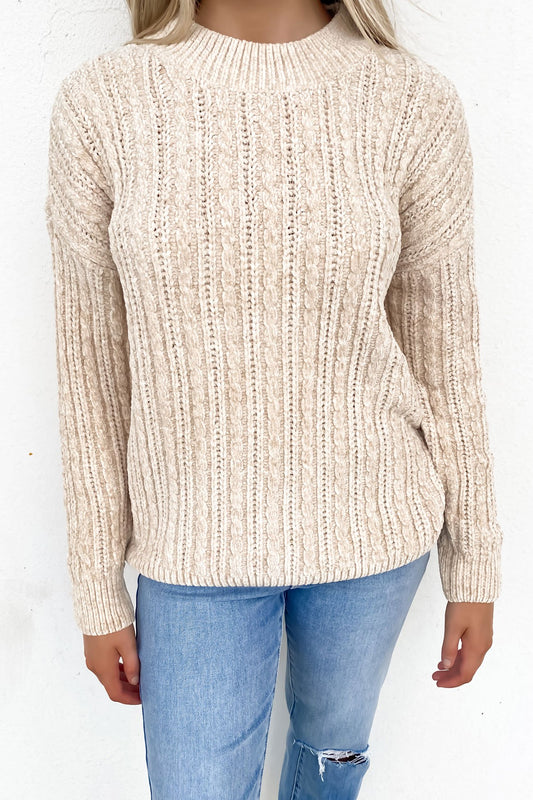 Next, we have the Abbey Knit Jumper Beige Multi paired back with the Sailor Jean Vintage White and the 2790 Platform White. To accessories we added the Leora Necklace Gold.