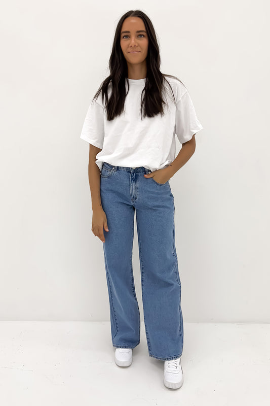 Look 2 - The Alannah Knit Long Sleeve Cream with the A 95 Baggy Jean Gigi, the Club C Double Revenge Shoe Chalk Oat and the Ashleigh Necklace Gold