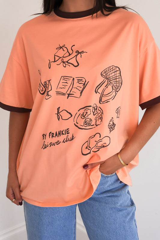 The Leisure Club Tee in Peach adds a soft pop of warmth that feels fresh and flattering, especially paired with the Jacqui Wide Leg Jean in Vintage White crisp, effortless and super elongating. The Bono Platform Sandal in Chocolate Brown grounds the outfit with that rich earthy tone, giving it a slightly elevated, cool-girl feel. Finished with the Pyxis in Chocolate, the matching brown accessories pull everything together for a balanced, neutral-meets-peach moment that’s ideal for weekend brunch, casual dinners or an easy day out.