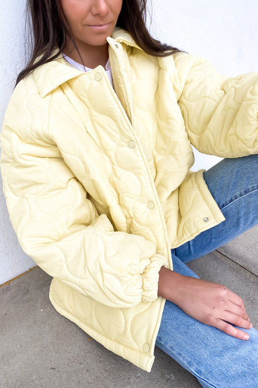 Stay warm and stylish with the Elyse Quilted Jacket in Butter. We love it paired back with the 'Landon Tee', the 'A 94 High Slim Jean Gina Rip', the 'Plunder With Webbed Strap Chalk', the 'Club C Double Shoe White Cold Grey', and some silver jewellery. Super cute!