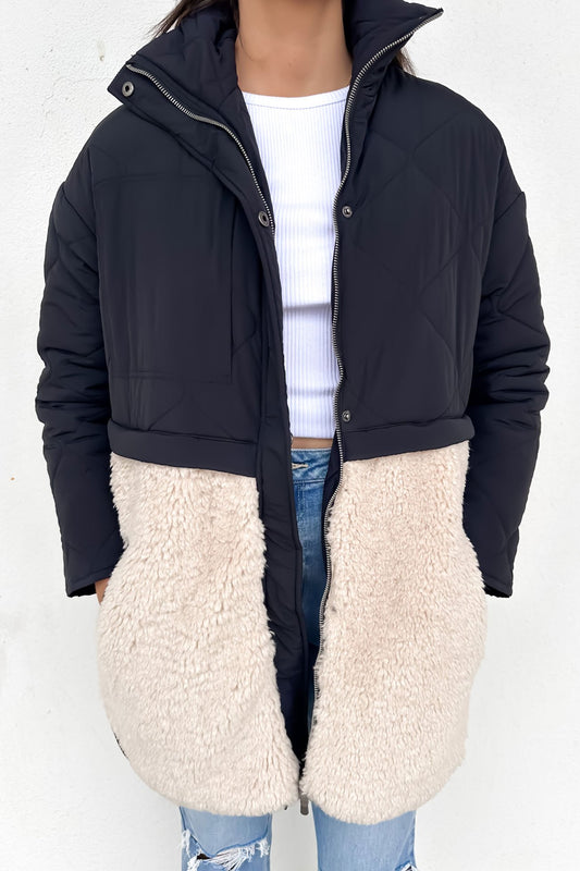 The Celia Coat Black is the perfect piece for this winter. Here we have it styled with the Cindy Knit Jumper Latte + High Straight Jean Indigo Lake Petite +  Club C Double Revenge Shoe White + Plunder With Webbed Strap Chalk + Catalina Hoops Gold.