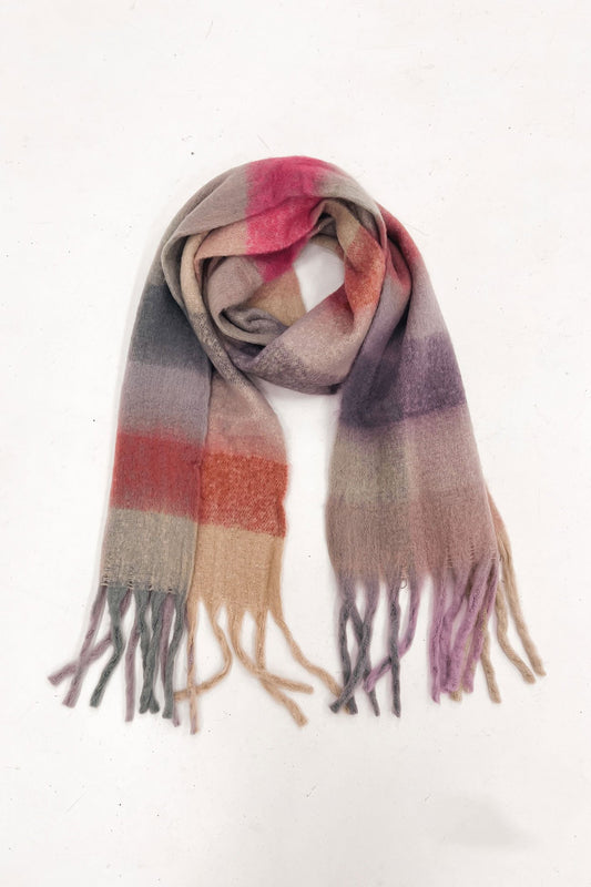 Look 3 - The Eve Trench Coat Black with the Agnew Knit Jumper Beige, the Neo Chunky Loafers Black Smooth, the Kirby Scarf Pink Stripe and a belt.
