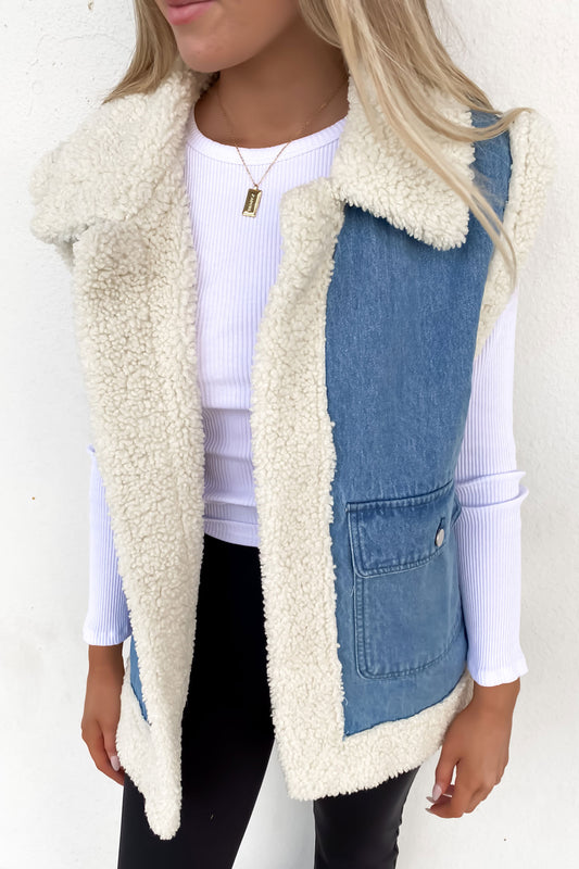 The Izzy Denim Sherpa Vest Blue will have you staying warm and cosy all season long. Here we have styled it 3 different ways, shop the look below.