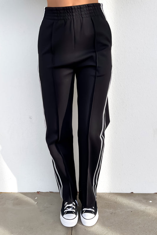 Look 3 - The Tanner Ruched Top Charcoal, with the Nina Pant, the Figure You Out Bag Black, the Ashleigh Necklace Gold and the Hawley Heel Black Mesh
