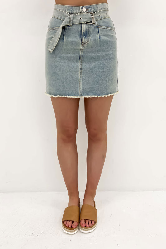 Add a pop of yellow to your wardrobe with the 'Margo Tee Lemon' and get your denim on in this edgy mini skirt! Style it with some tan accessories and you have the cutest summers day look!