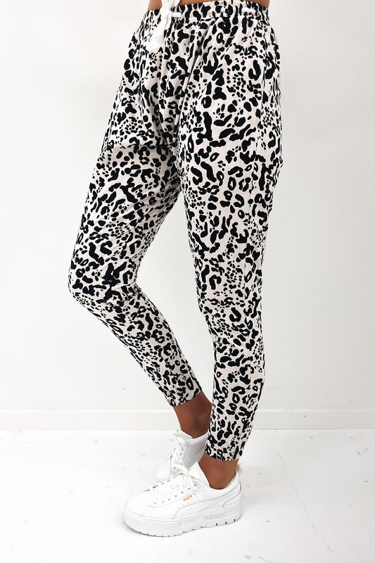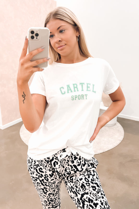 Feel comfortable and stylish in this perfect casual outfit! Take the 'Marlo Tee Rosemary' and the 'Comeback Pant Creme Leopard' and style them with the '2740 Platform Tumbled Leather White', the 'Aztec Coin Necklace Gold' and a cap!