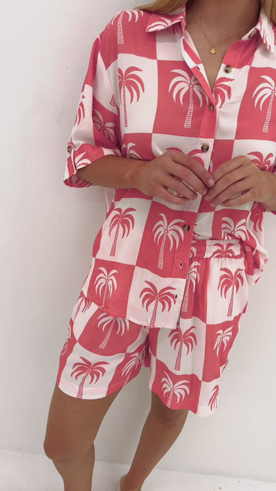 Level up your summer style with the Easton Short Melon Palm. This trendy and comfy pant will pair back perfect with the Easton Shirt Melon Palm for a matching set vibe!