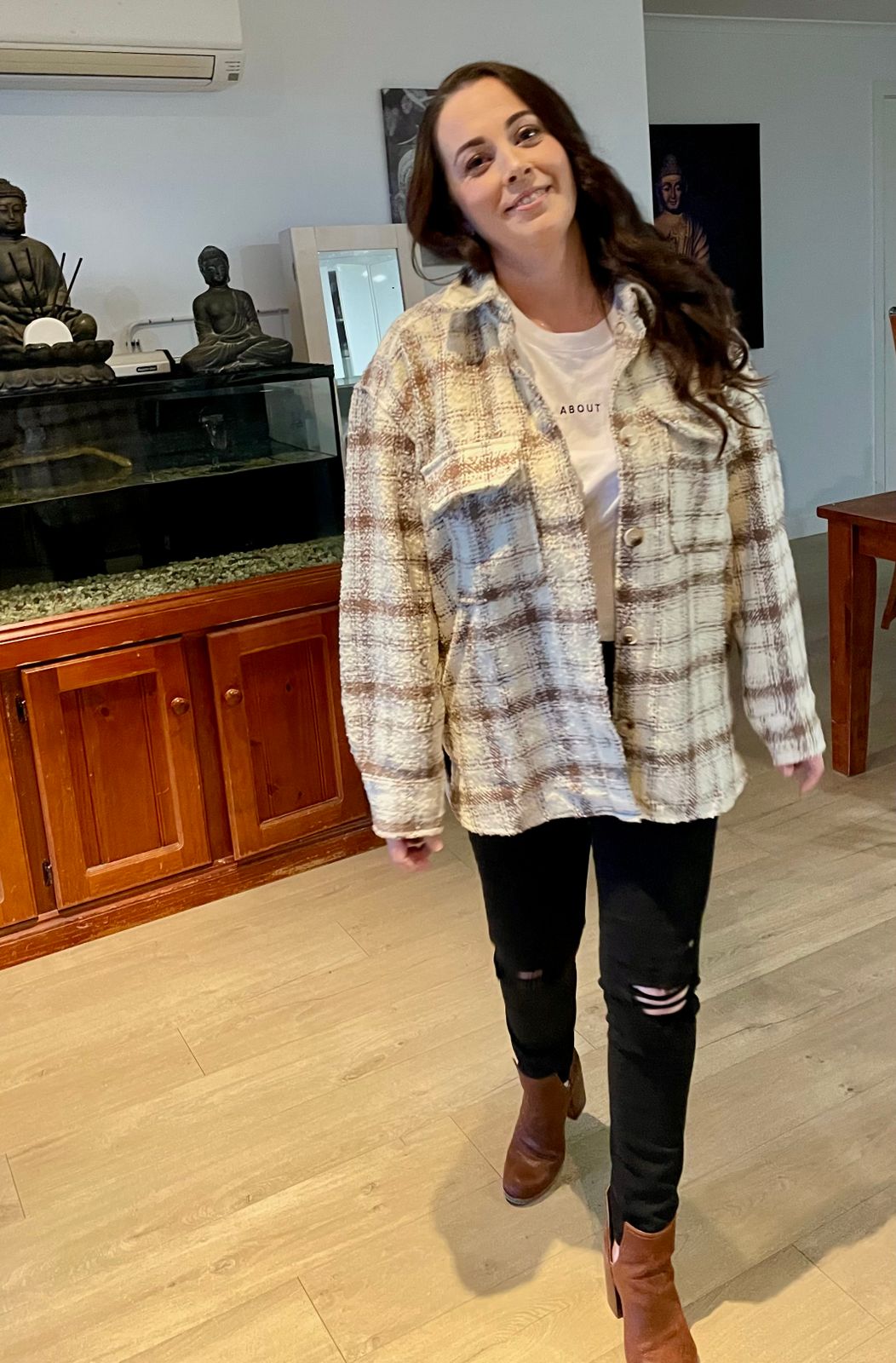 The Ember Shacket Brown Cream is a must have for your wardrobe this season. Pair back with a white tee and your go to denim for an easy yet on trend look.
