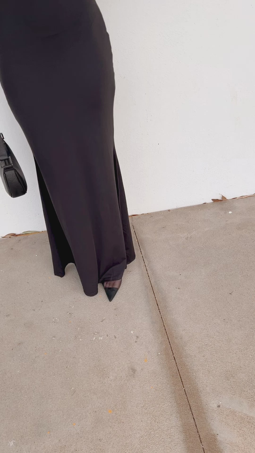 The Penelope Maxi Dress in black is the perfect addition to your wardrobe. This elegant dress features a bodycon maxi design and will elevate your style.