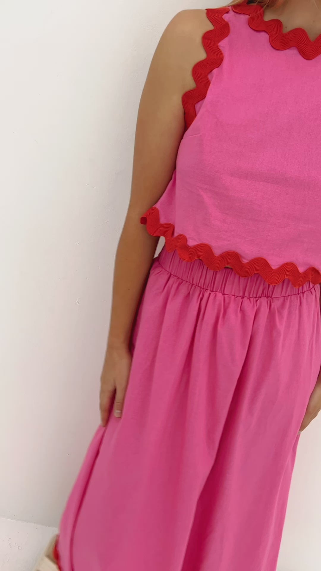 Unleash your inner fashionista with our Rylee Set. This top and maxi skirt set features a high round neckline and button closure for a chic touch. The elasticated waistband offers a comfortable fit while the skirt's lining adds a touch of sophistication. The pink and red swirl detail is sure to turn heads. Elevate your style with this must-have set!