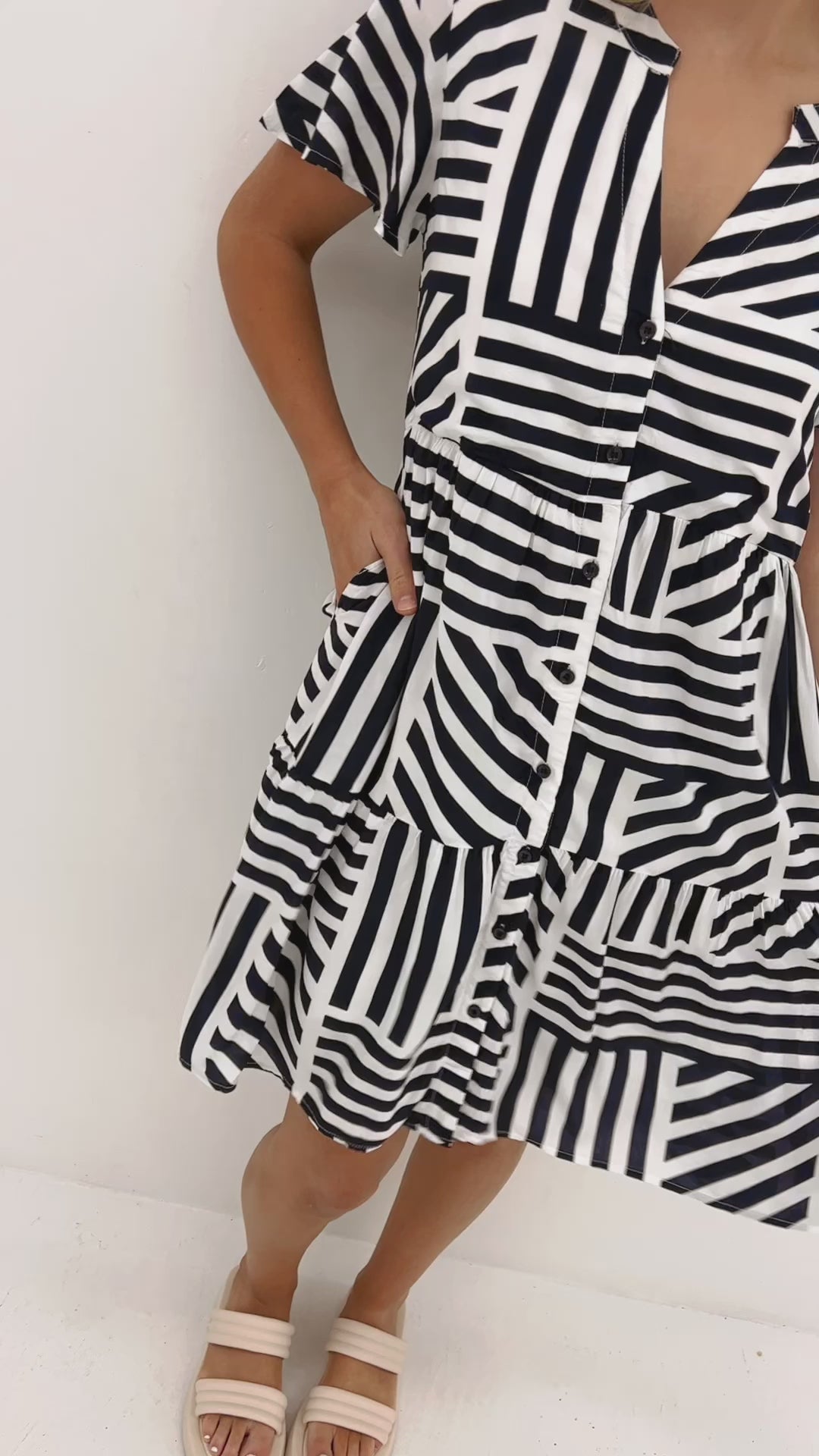 Introducing the Sara Mini Dress Ziggy Navy, a chic blend of style and comfort. This dress features a trendy zigzag pattern in a sophisticated taupe hue, making it a versatile wardrobe essential.